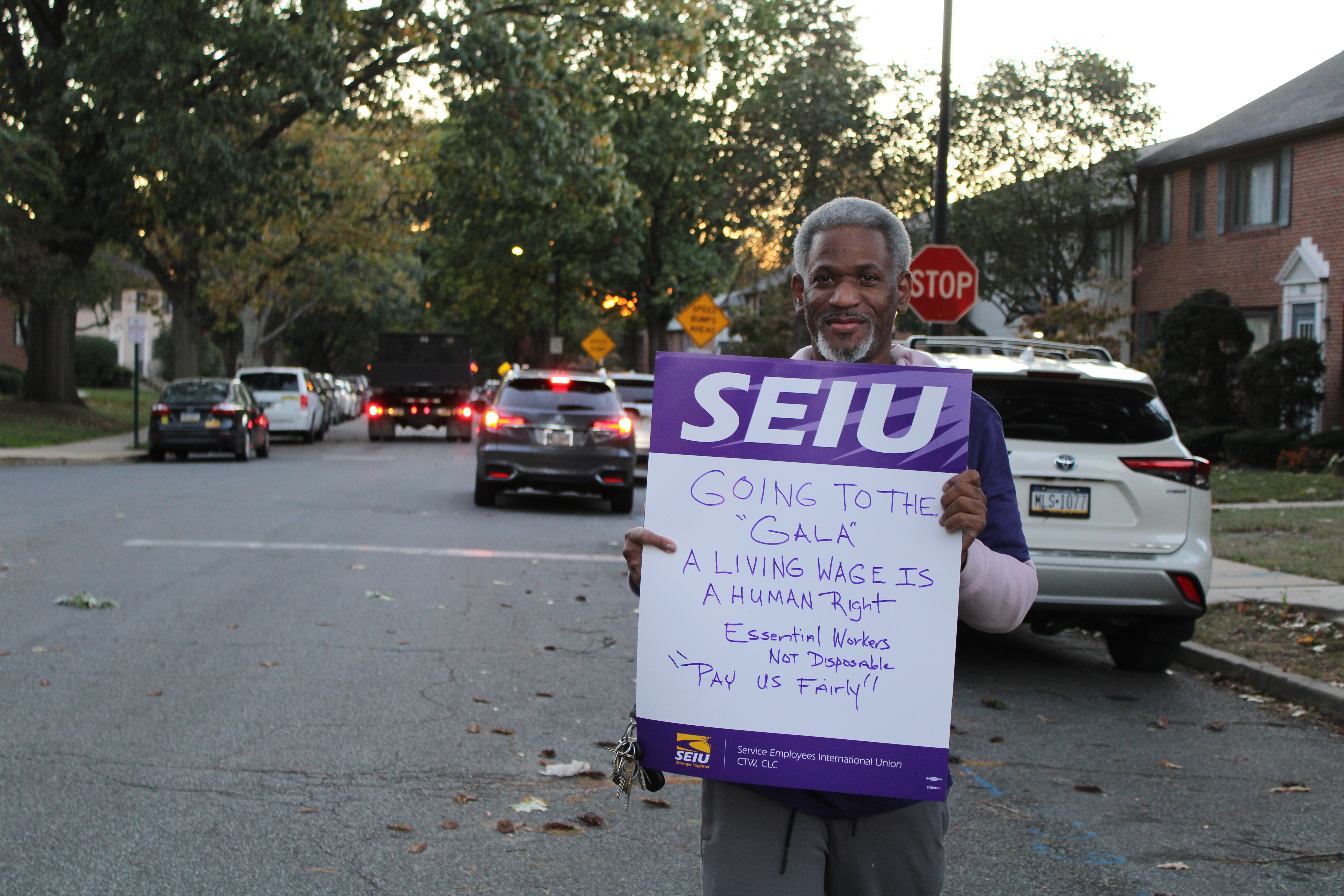 On October 16, 2025, SEIU Local 668 members who work for Merakey in Bucks, Cambria, and Westmoreland counties rallied outside The Delbrook in Drexel Hill during Merakey’s annual Leading the Way Awards Gala.